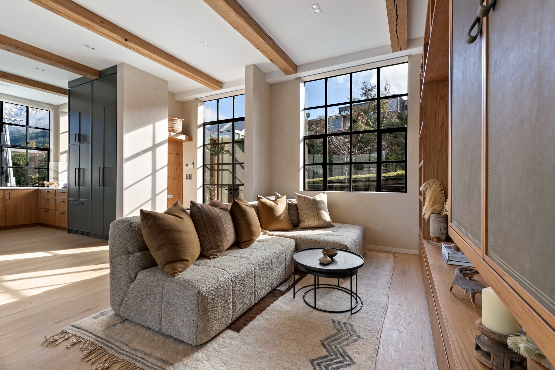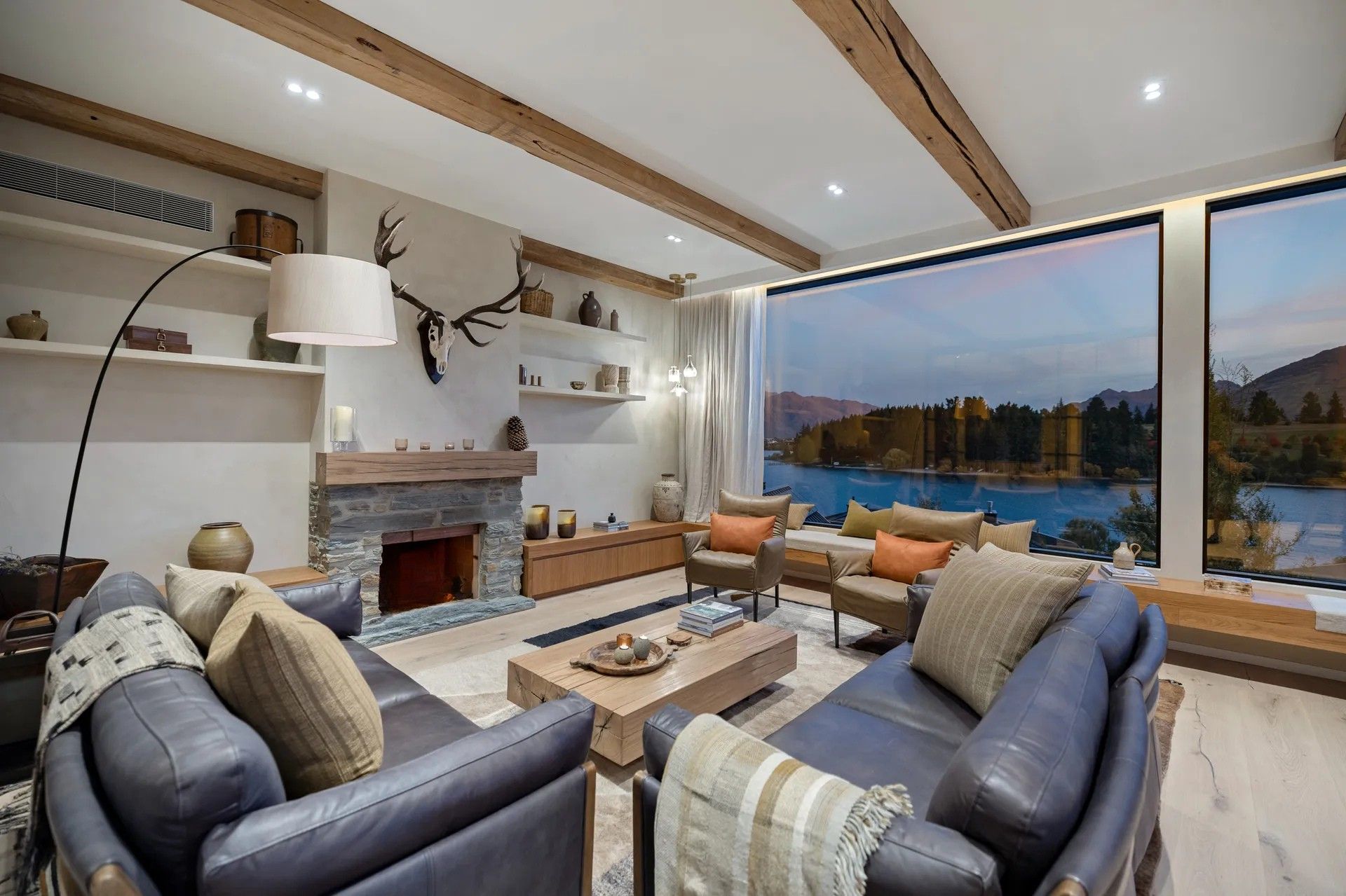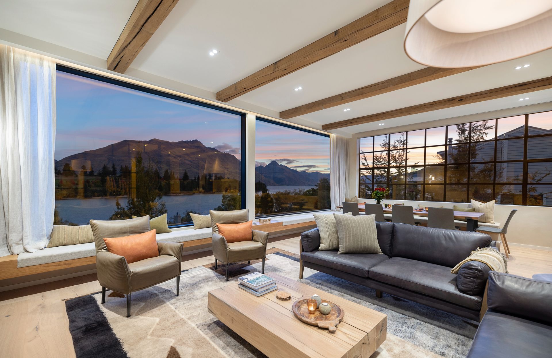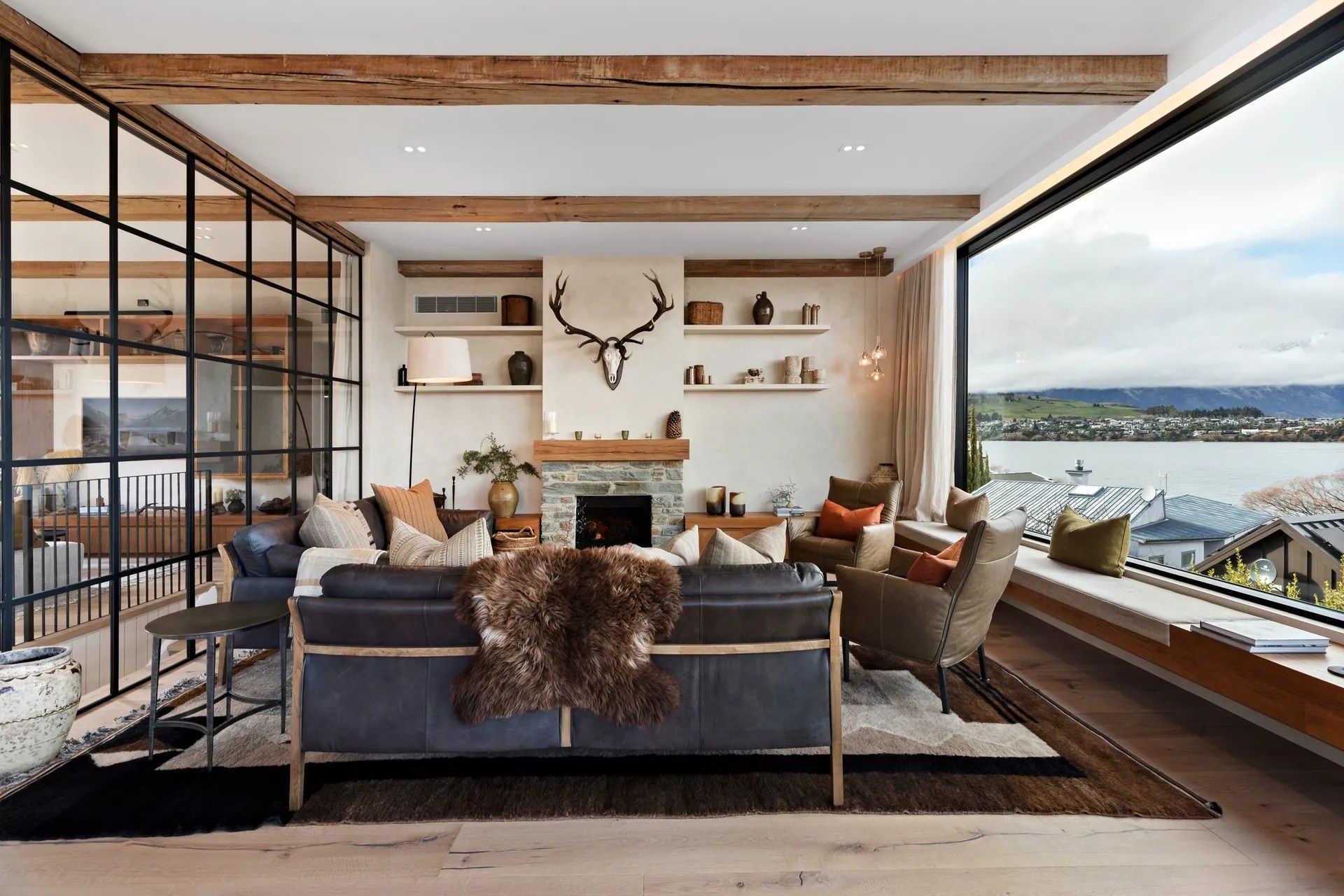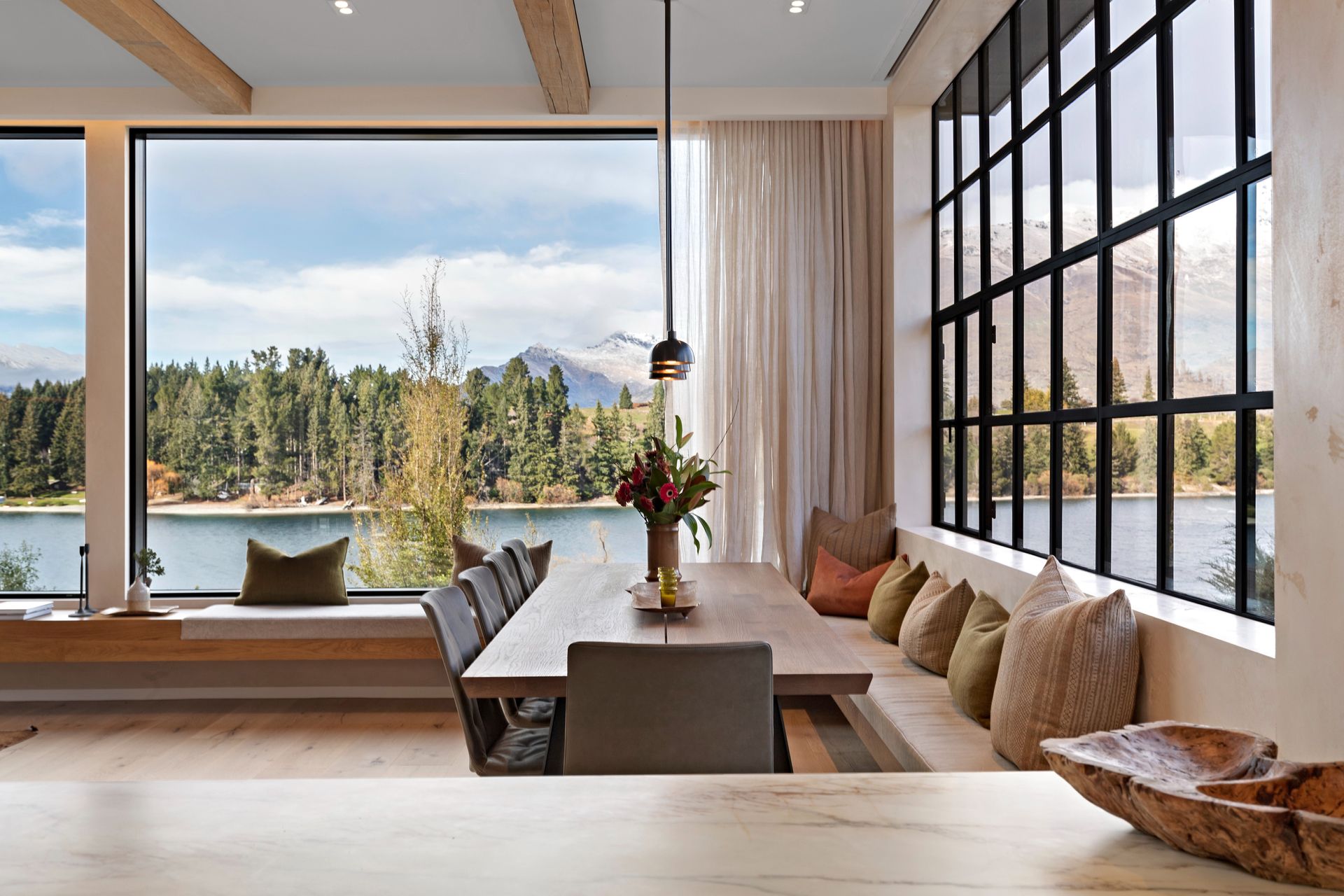 As soon as you step inside you will be in awe of the lake and mountain views on offer from the floor to ceiling windows. The open plan living space is bathed in natural light and the soaring ceilings lend an air of grandeur to the already impressive space. A separate cosy nook provides a spot to curl up with a good book in the sun or enjoy a movie.