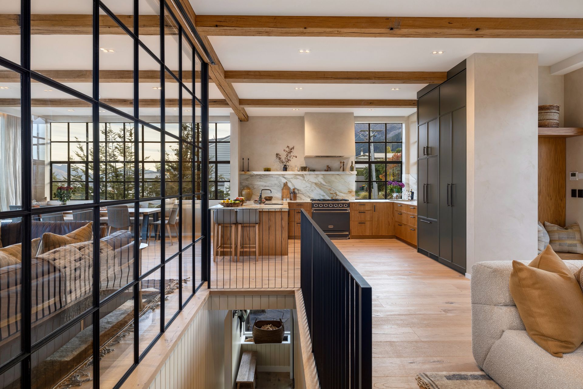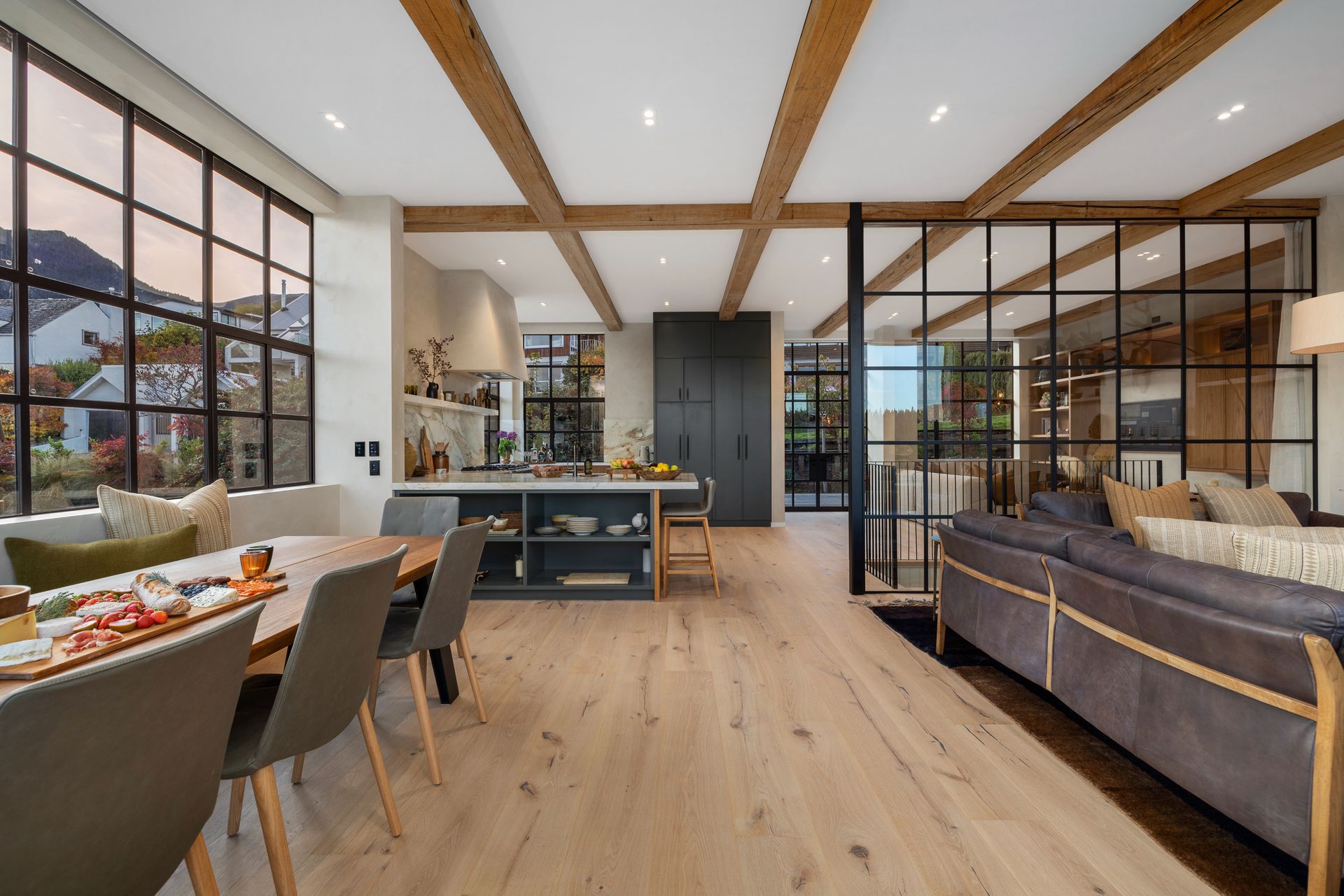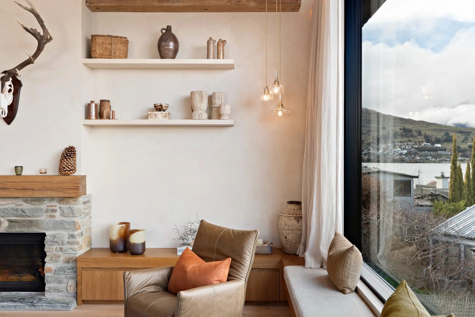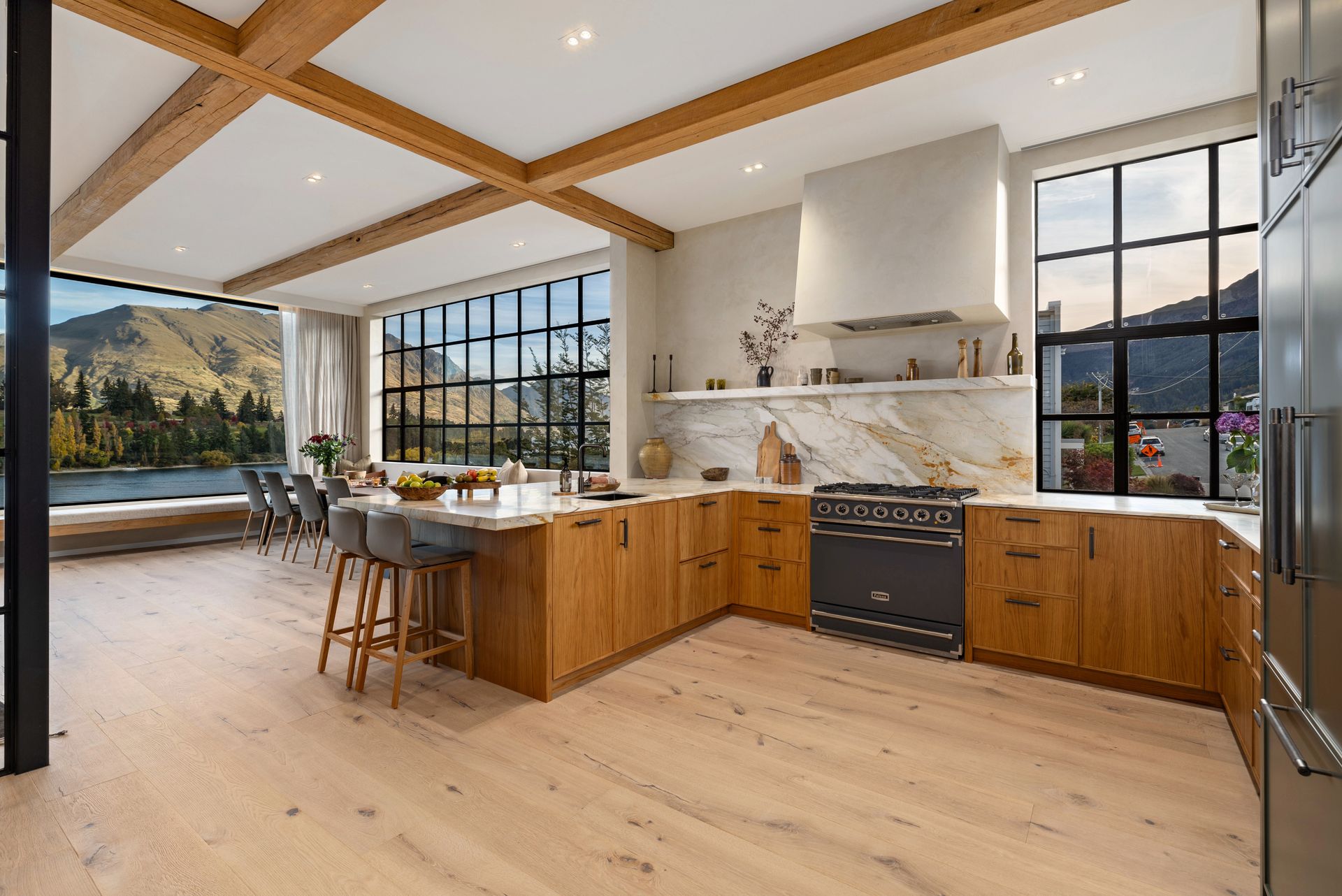 As soon as you step inside you will be in awe of the lake and mountain views on offer from the floor to ceiling windows. The open plan living space is bathed in natural light and the soaring ceilings lend an air of grandeur to the already impressive space. A separate cosy nook provides a spot to curl up with a good book in the sun or enjoy a movie.