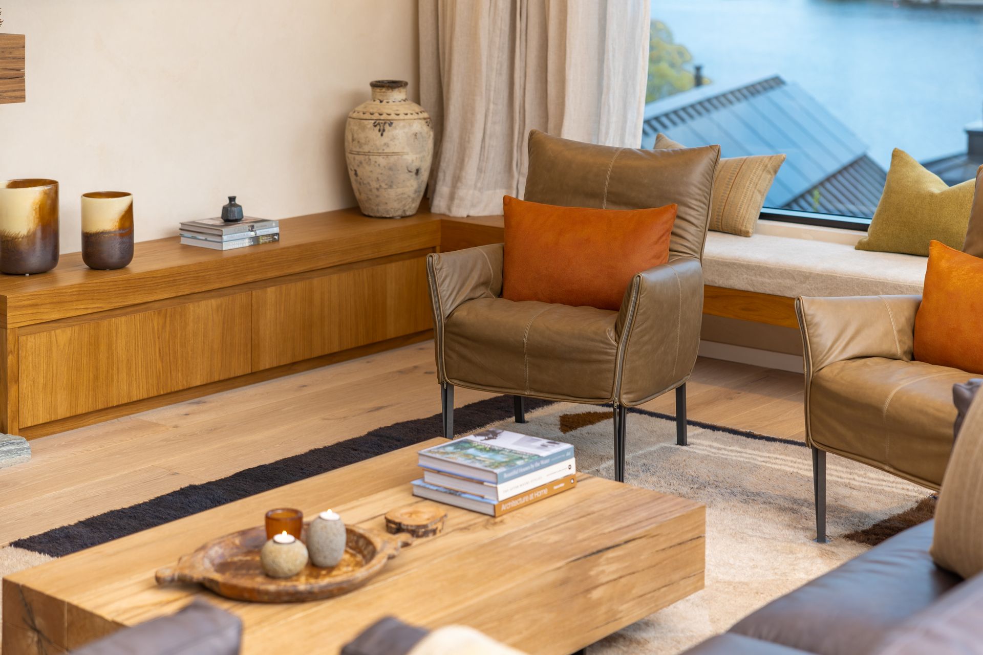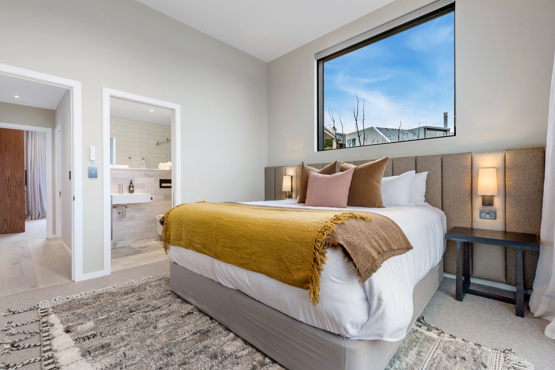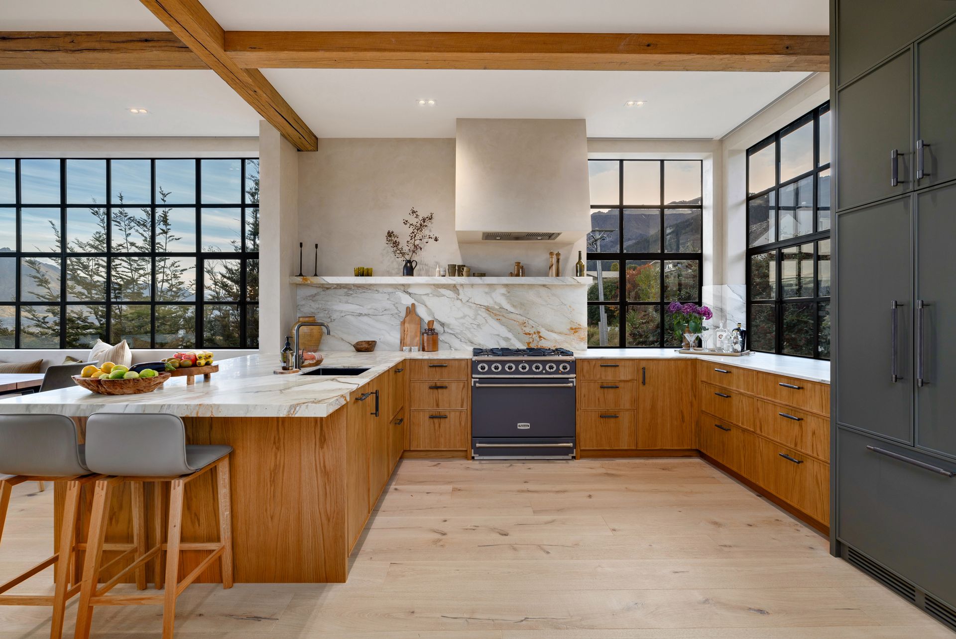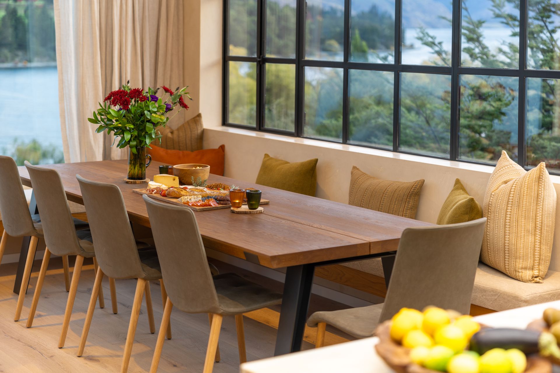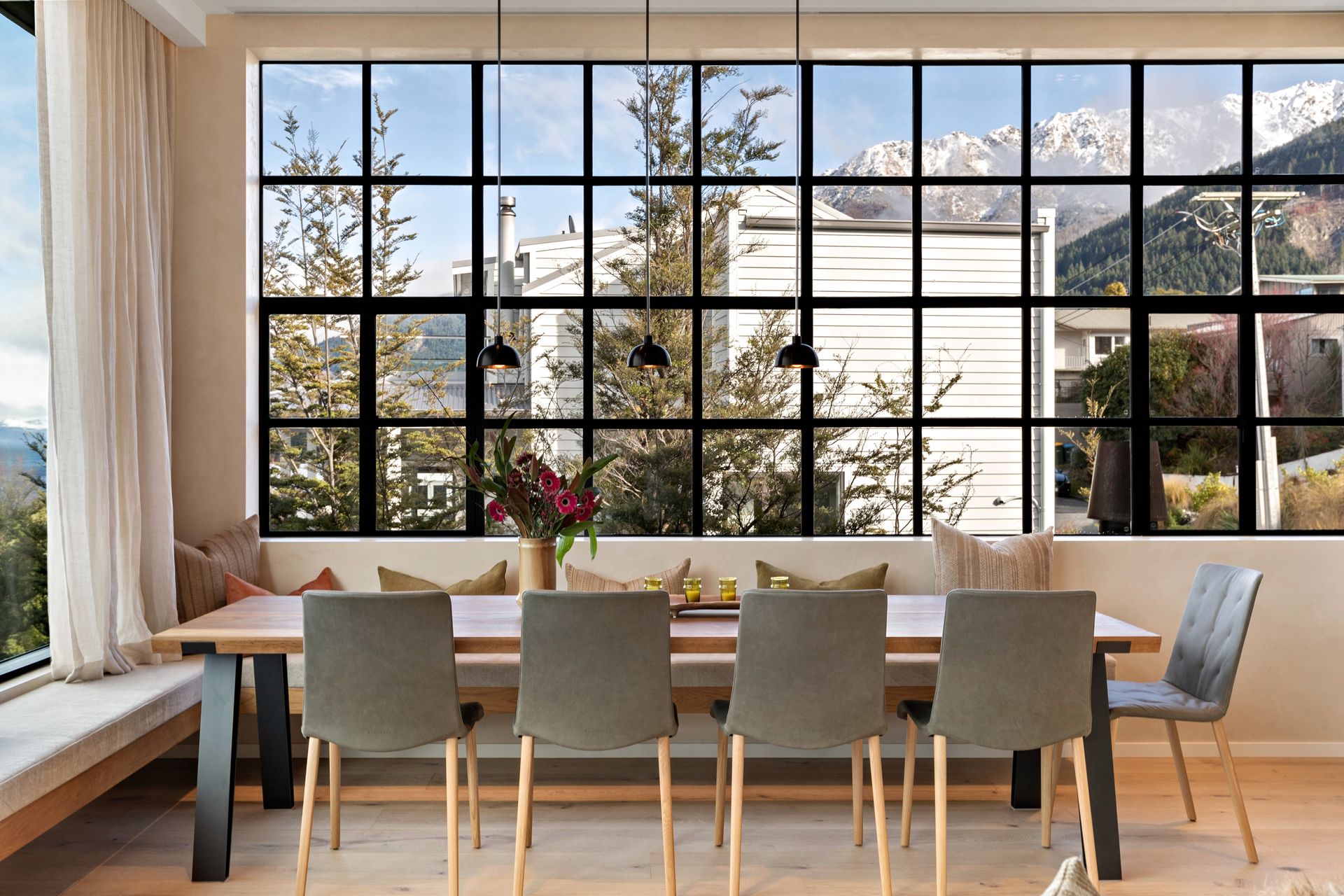 As soon as you step inside you will be in awe of the lake and mountain views on offer from the floor to ceiling windows. The open plan living space is bathed in natural light and the soaring ceilings lend an air of grandeur to the already impressive space. A separate cosy nook provides a spot to curl up with a good book in the sun or enjoy a movie.