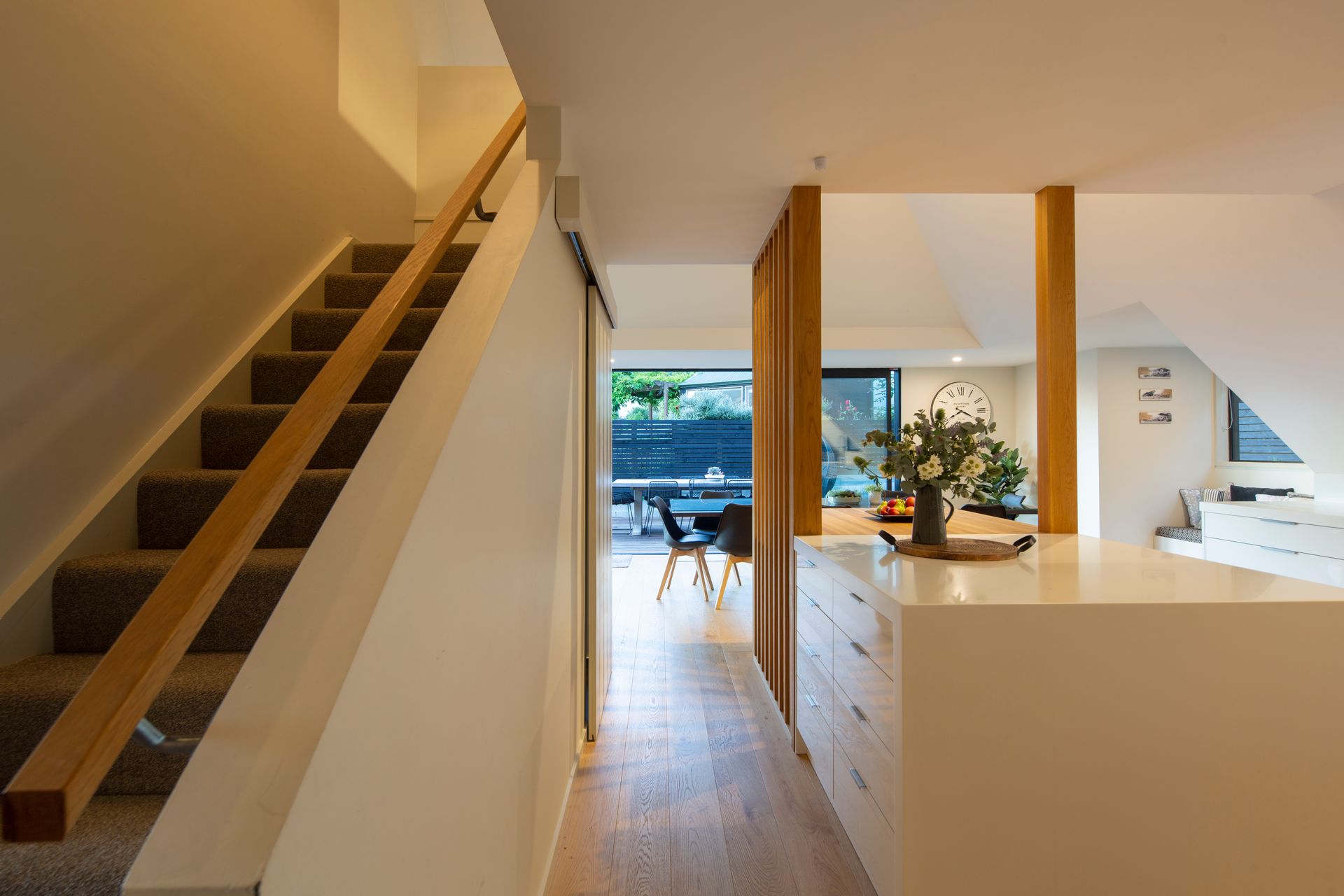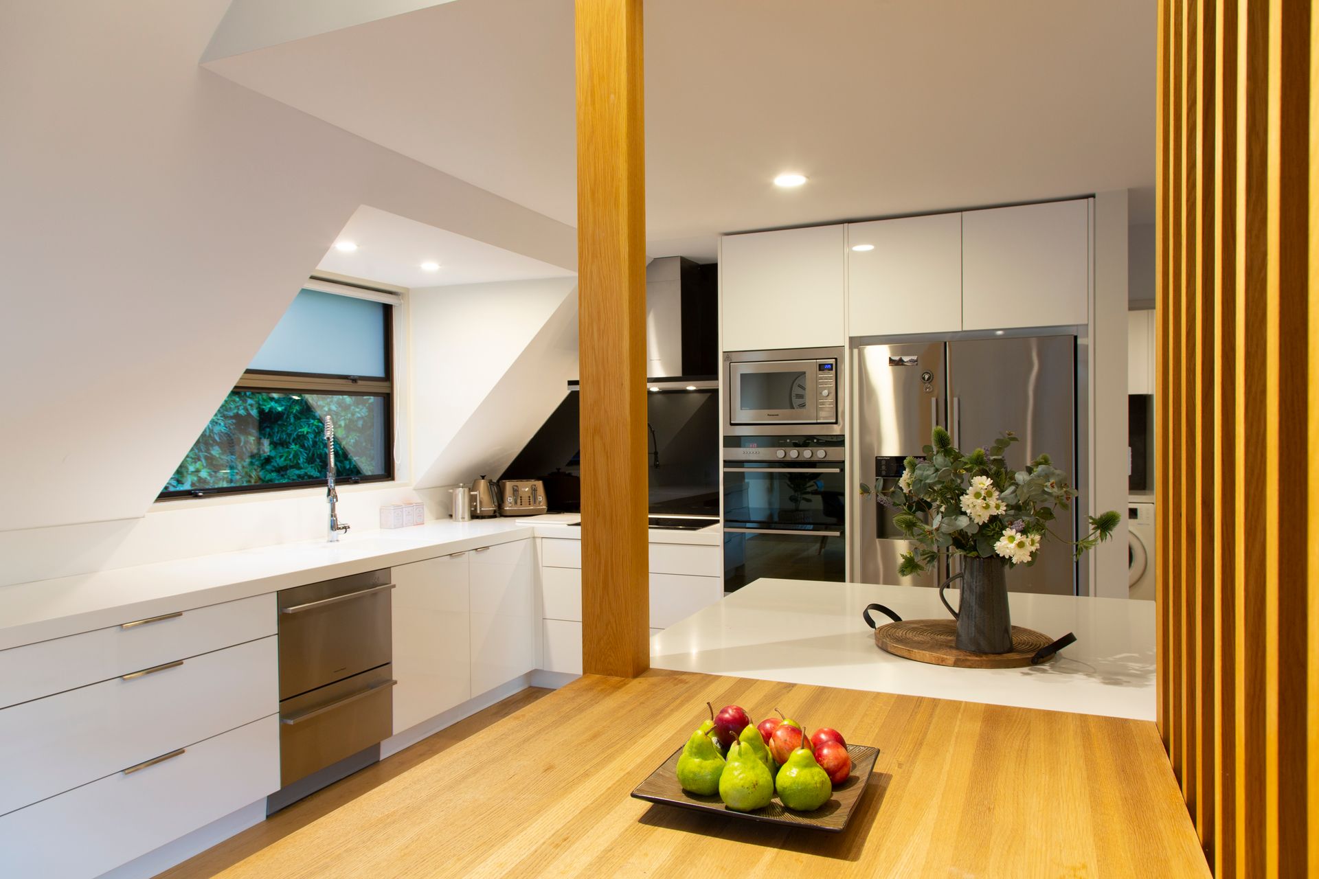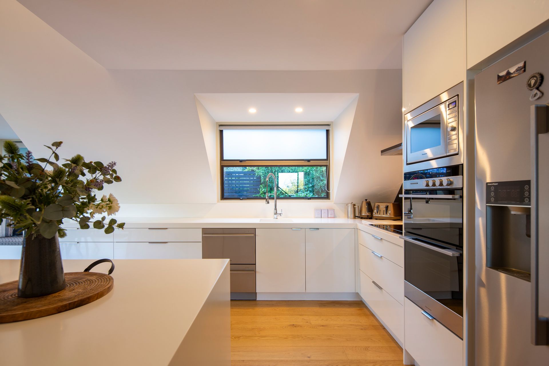 Inside, the modern open-plan kitchen, dining, and living area offer a warm and inviting atmosphere, kept cosy by a wood-burning fireplace on cooler days. The stylish kitchen is fully equipped with high-end appliances, including a coffee machine for your morning espresso and a slow cooker for comforting, home-cooked meals.