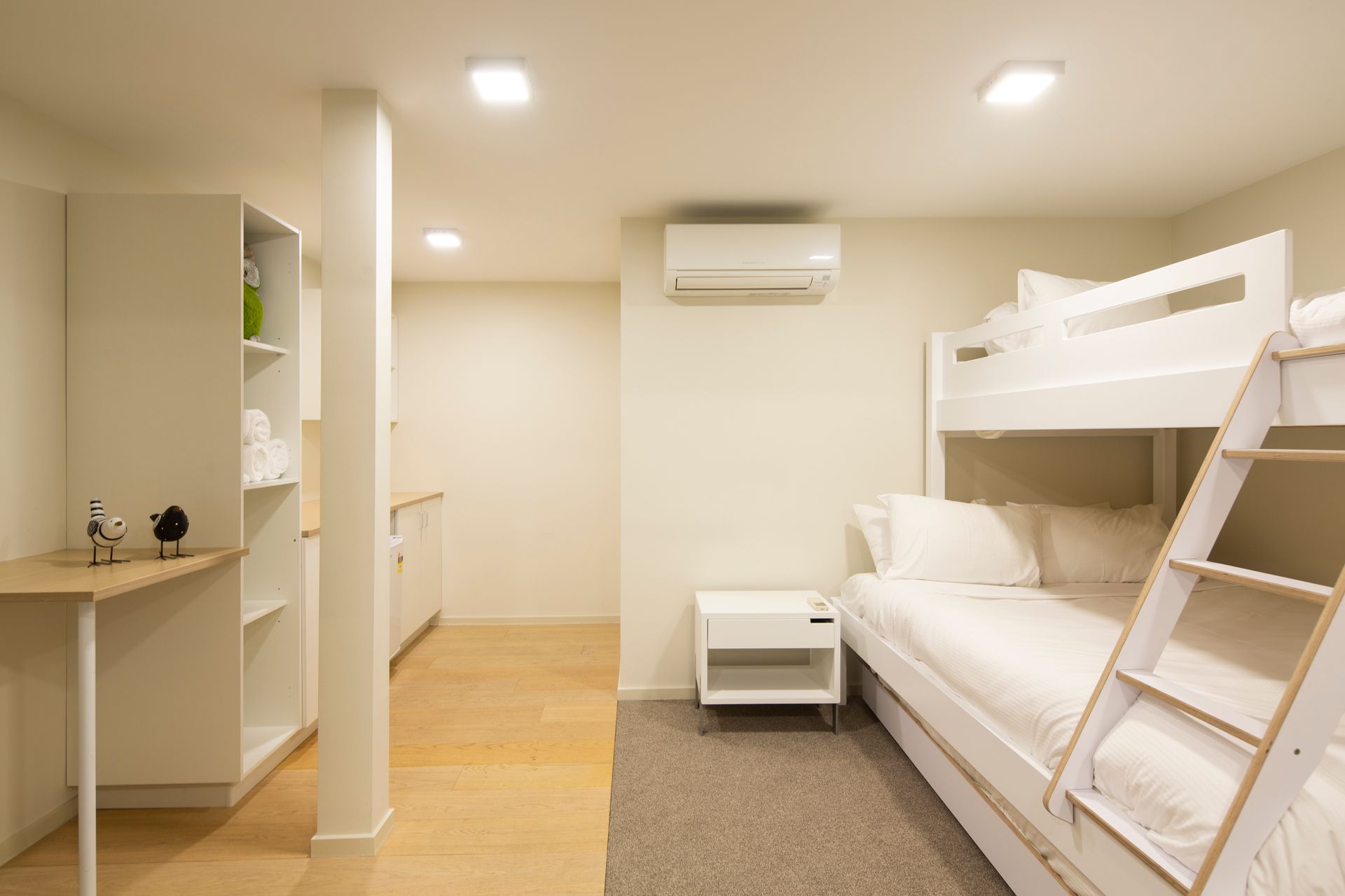 - 1x Trio Bunk-bed + Trundle Bed (trundle bed must be requested to be set up ahead of arrival and incurs a linen fee $150)