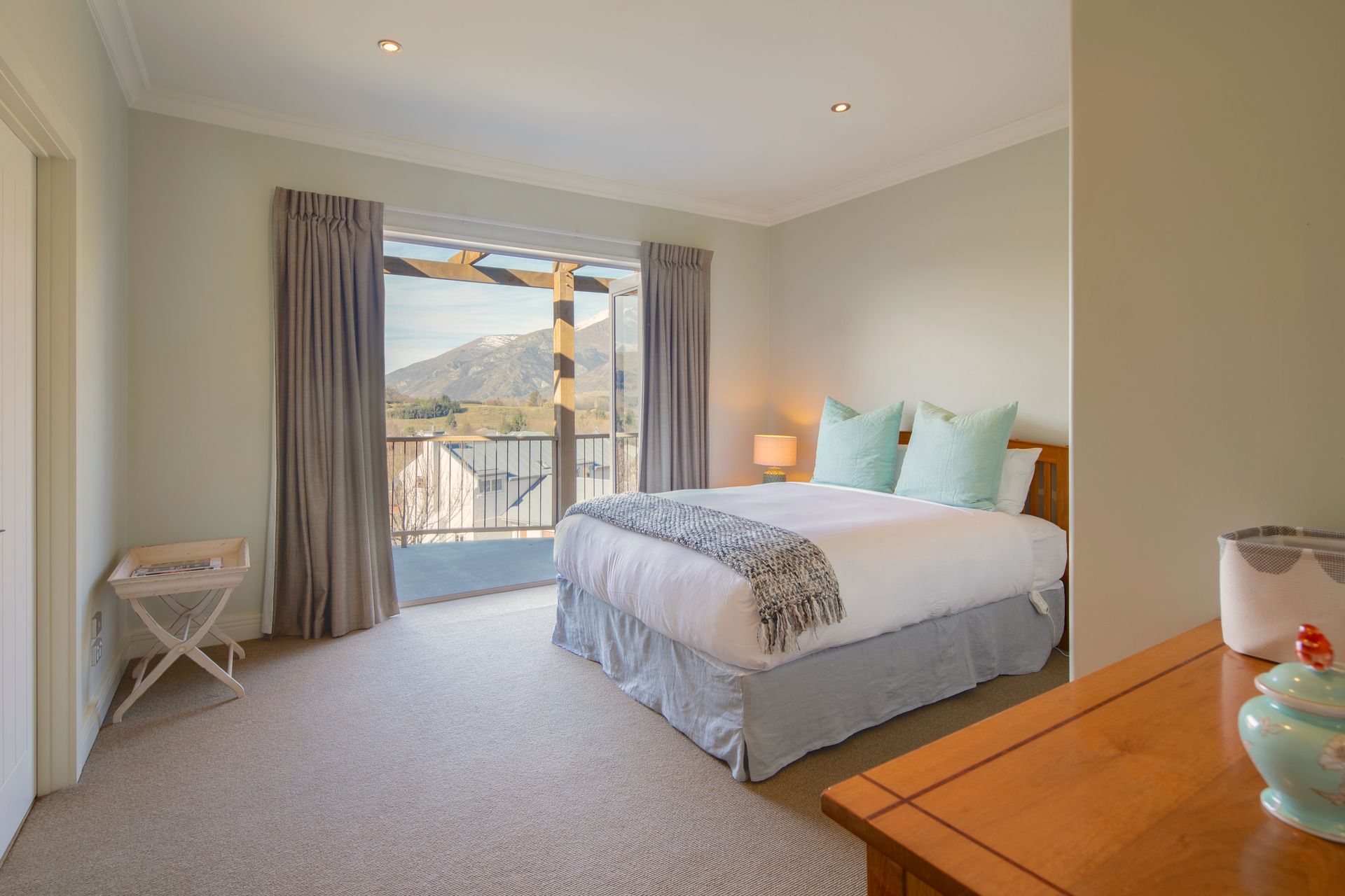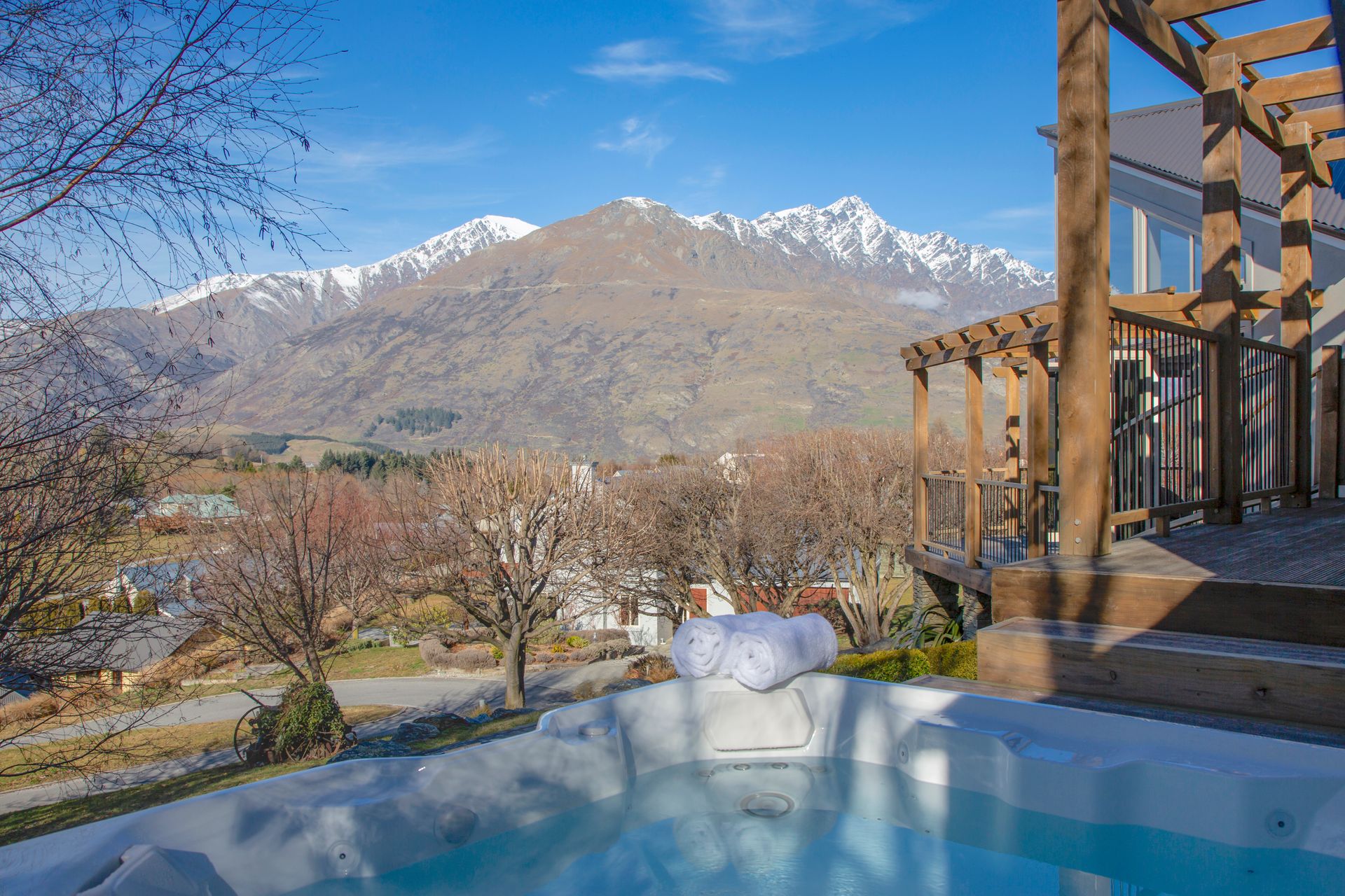 In winter months, soak in the spa after skiing then enjoy the underfloor heating, oil-filled radiators, and a cosy ambience with the gas fireplace. In the summertime, pull open the doors and windows and breathe in the fresh mountain air as the sun climbs The Remarkables and the fantails, tui and bell birds provide the bird song.